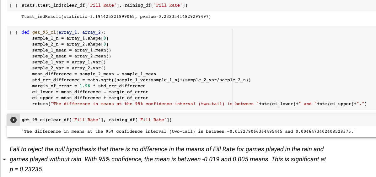 This project showcases the use of independent samples t-tests in Python. The attendance of FBS College Football Games has been on a steady decline over the last 20+ years, and we take a closer look at the effect of independent variables on a stadium's Fill Rate.